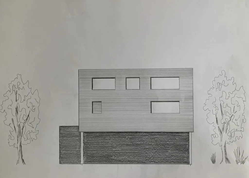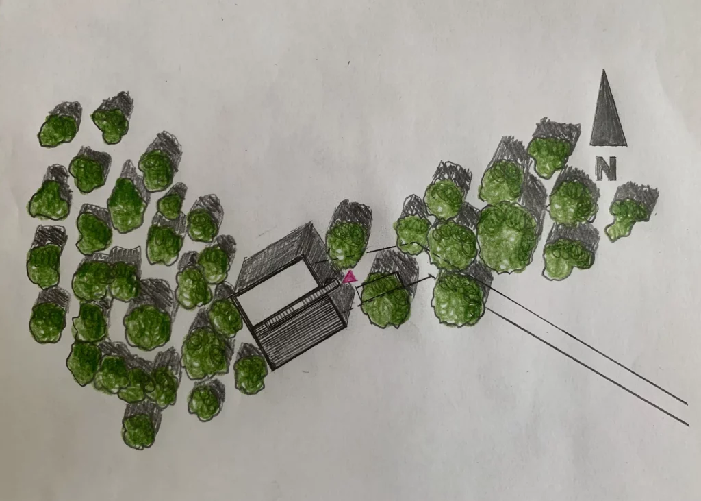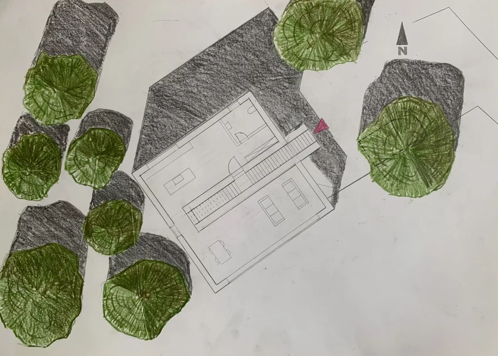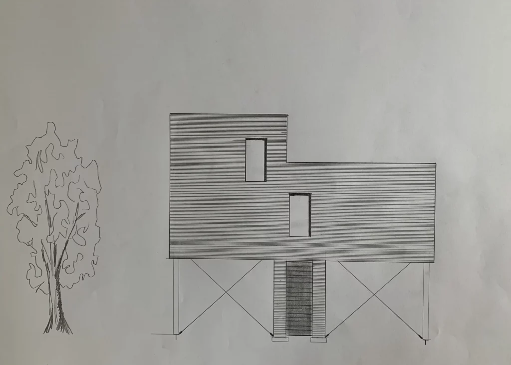 Im Team mit Susanne Stein arbeiten wir die Entwürfe und Skizzen für das Baumhaus. Die Grundrisse, Schnitte und Ansichten wurden per Hand gezeichnet.