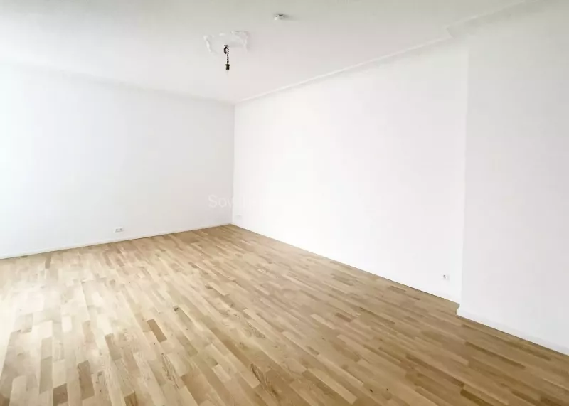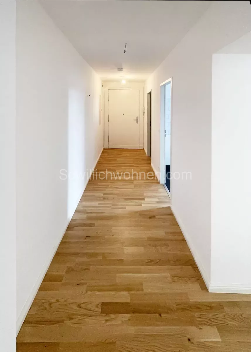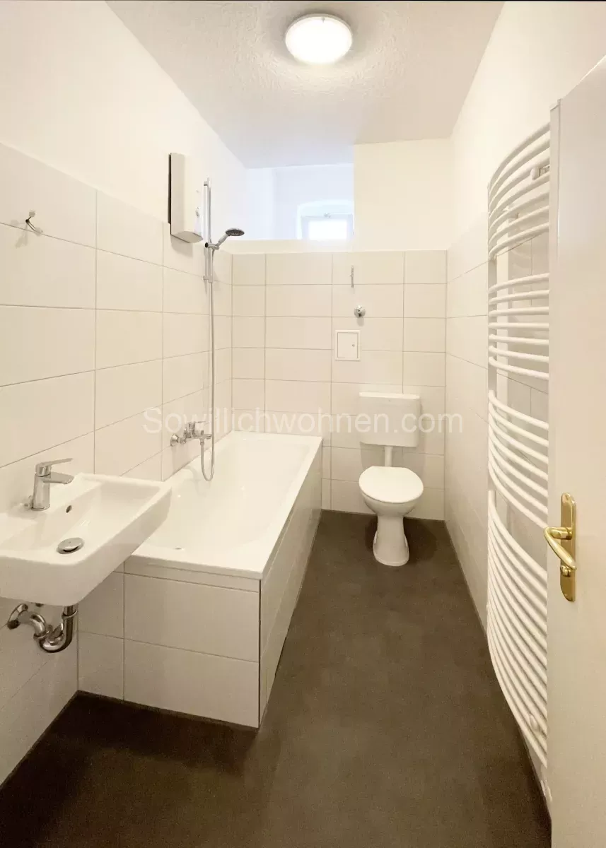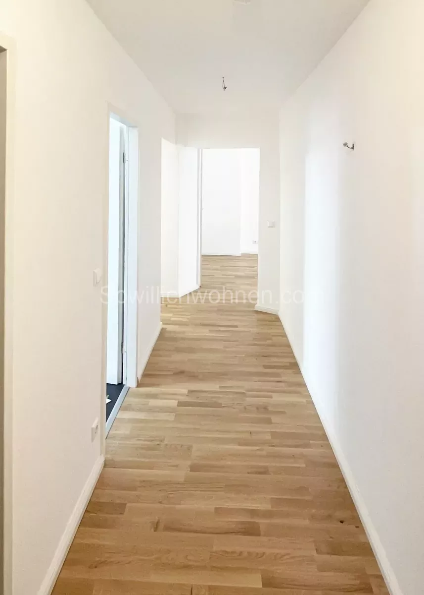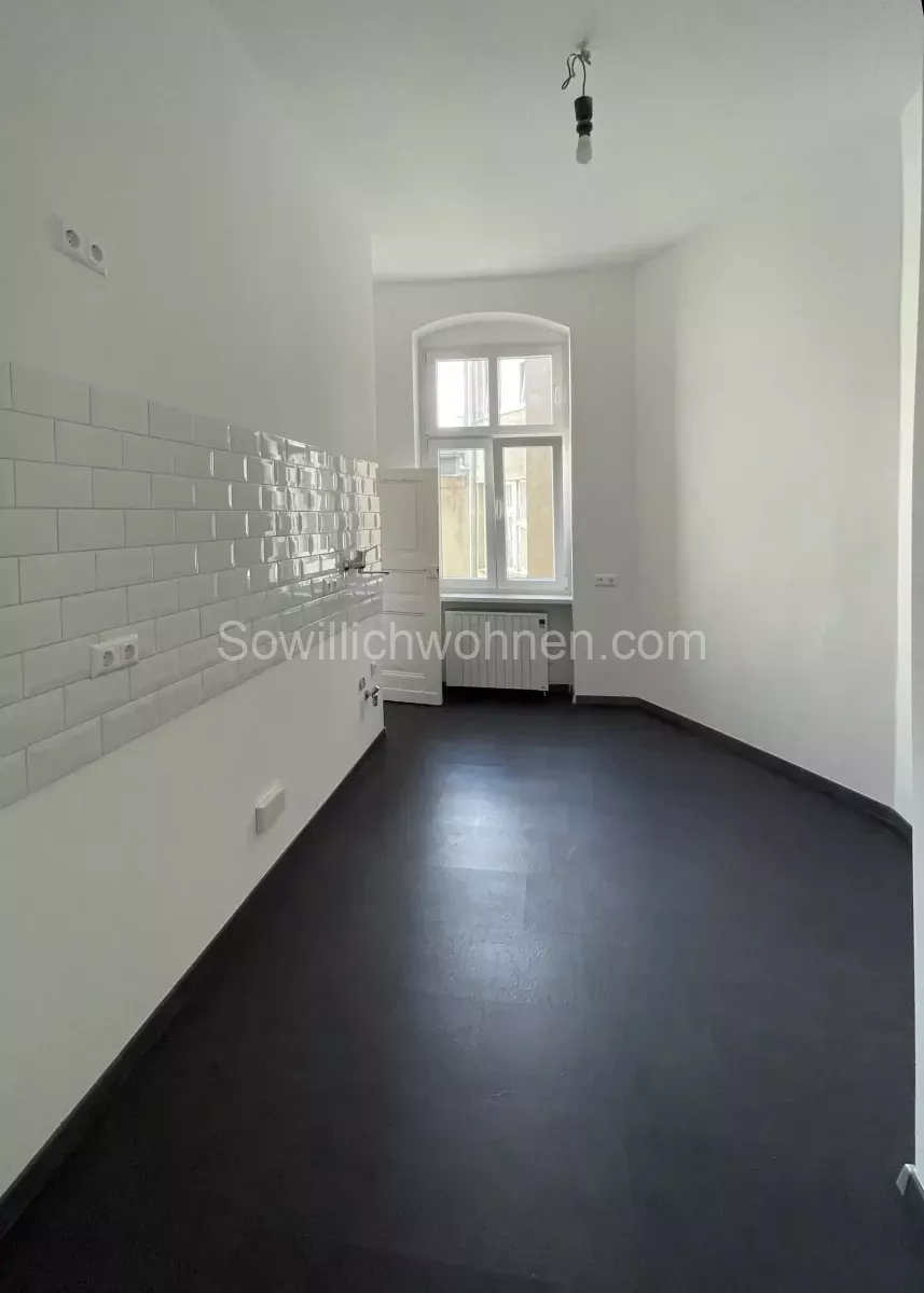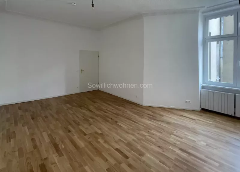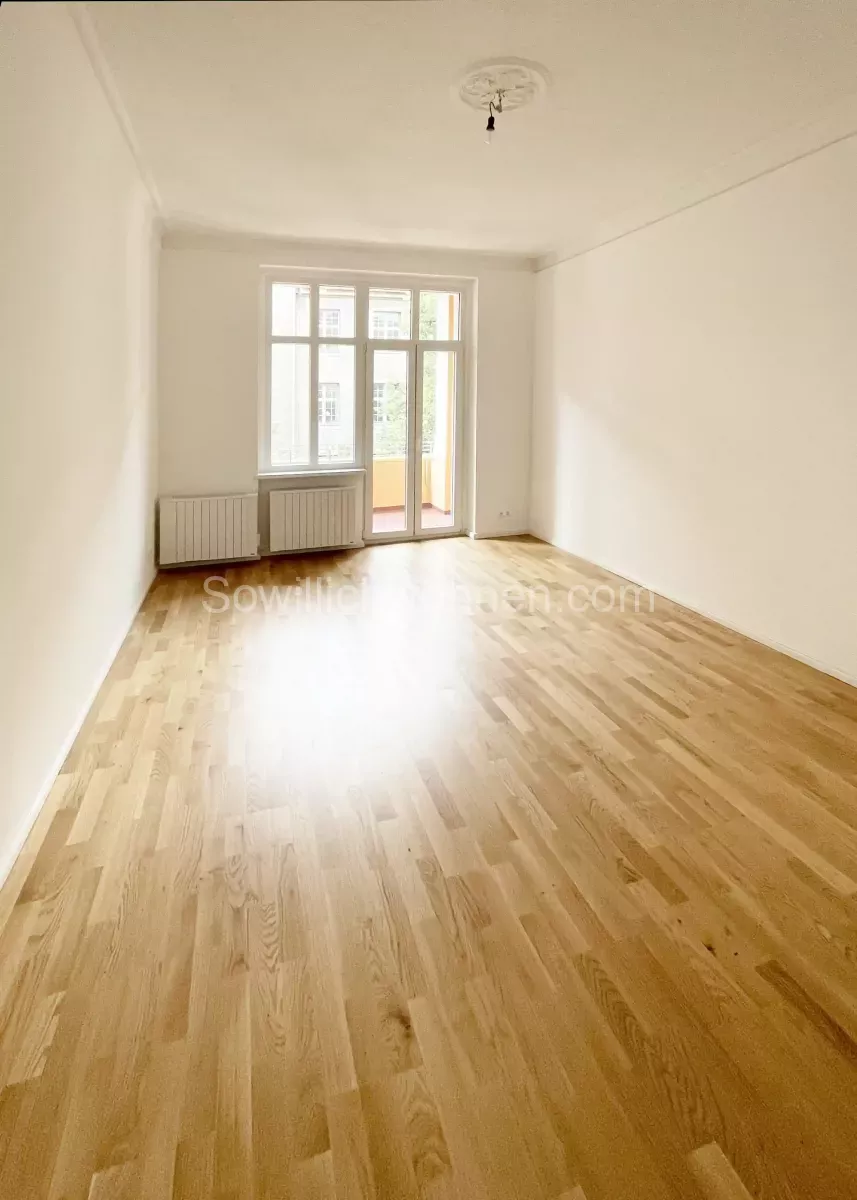 Die zwei Zimmerwohnung im 3. Obergeschoss des Berliner Mehrfamilienhauses hat einen schönen Loggiabalkon nach Westen und ein „Berliner Zimmer“, welches auf den ruhigen Hof des Hauses ein großes Fenster hat. Die letzte Modernisierung hatte die Wohnung in den 1980er Jahren erhalten. Damals wurden die Wohnungen in der Regel mit einem vollständigem Bad ausgestattet. Das Bad, aber auch die elektrische Installation sowie die Fenster mussten erneuert werden. Im Zuge der Arbeiten wurde der Jugendstil-Stuck aufgearbeitet und ausgebessert. Ein neuer Parkettboden in den Wohnräumen und ein schieferfarbener Vinylboden in Küche und Bad runden das moderne Bild der Wohnung im Altbau harmonisch ab.