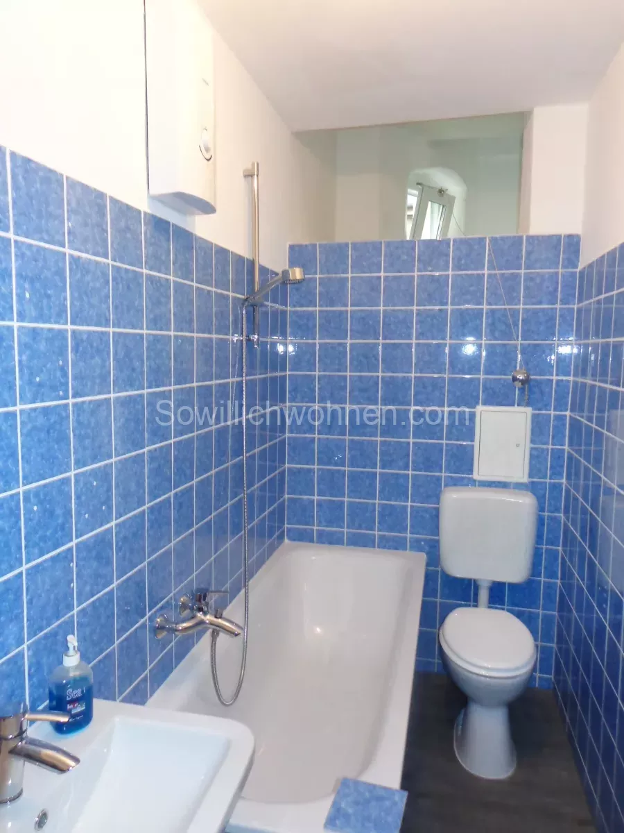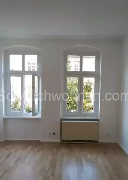 Die mittlere Wohnung im 3. Obergeschoss des Mehrfamilienhauses in Berlin Neukölln hat ihre zwei Zimmer nach Westen liegend. Im schmalen Zimmer wurde eine Schiebetür eingebaut, die mehr wertvollen Platz im hinteren Teil des Zimmers gibt. Das gut erhaltene Bad der 1980er Jahre bekam ein Facelift und strahlt im weiterhin modernem hellblau!