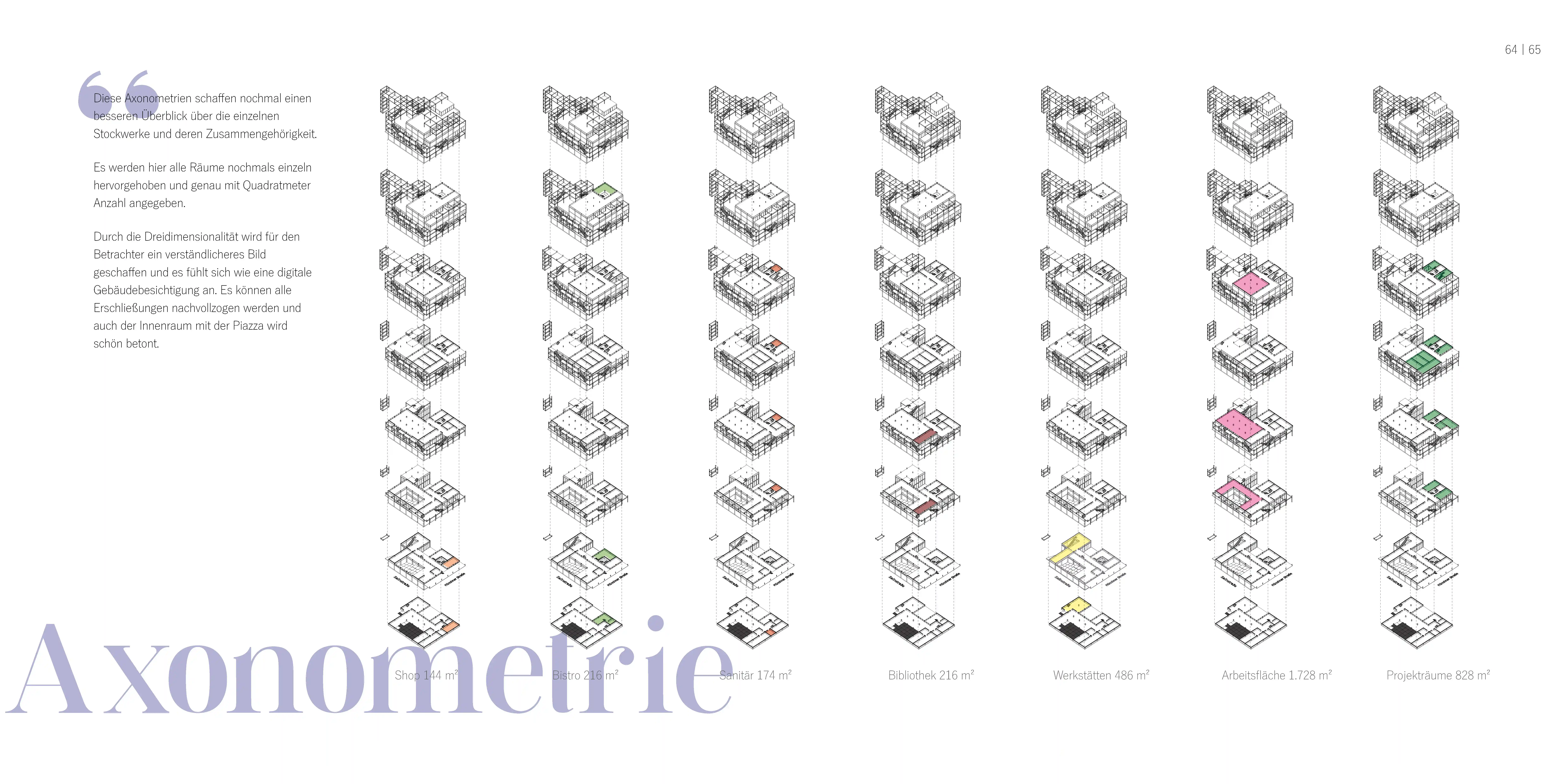 Ziel ist es, bei einem Umbau möglichst viele vorhandene Ressourcen zu erhalten und zu nutzen. Die Form des Bestandes wurde um mehrere Auskragungen erweitert. Auffallend ist das verwendete Gerüst, welches im Raster des Bestandes läuft und sowohl funktional als auch gestalterisch wertvoll ist. Die Konstruktion scheint hier das alte Gebäude zu umschlingen und zu ergänzen. Offen und Geschlossen bilden eine neue Symbiose. Auch im Inneren zieht sich diese Symbiose fort, sodass die Grenzen verschwimmen und mehr Freiheit der Kreativität gelassen wird. Es wird ein neues Raumgefühl geschaffen.