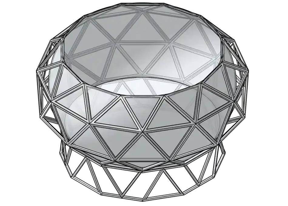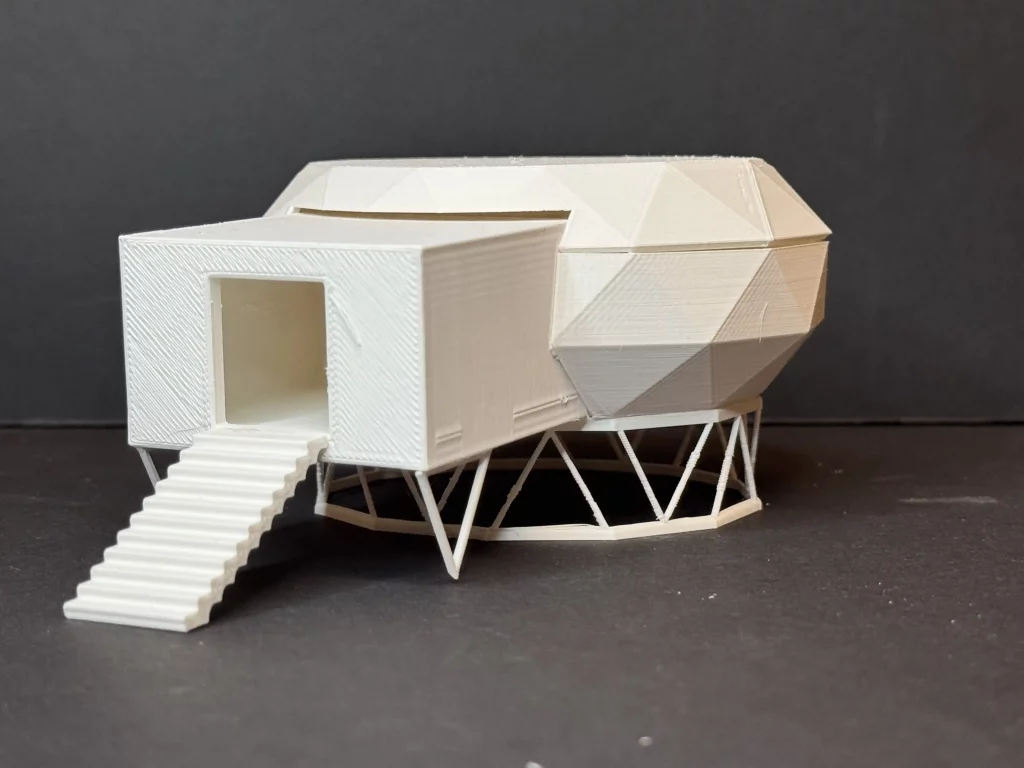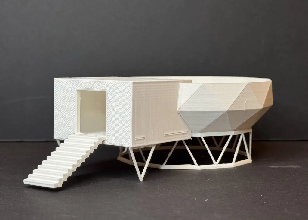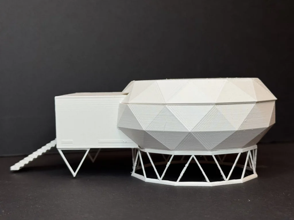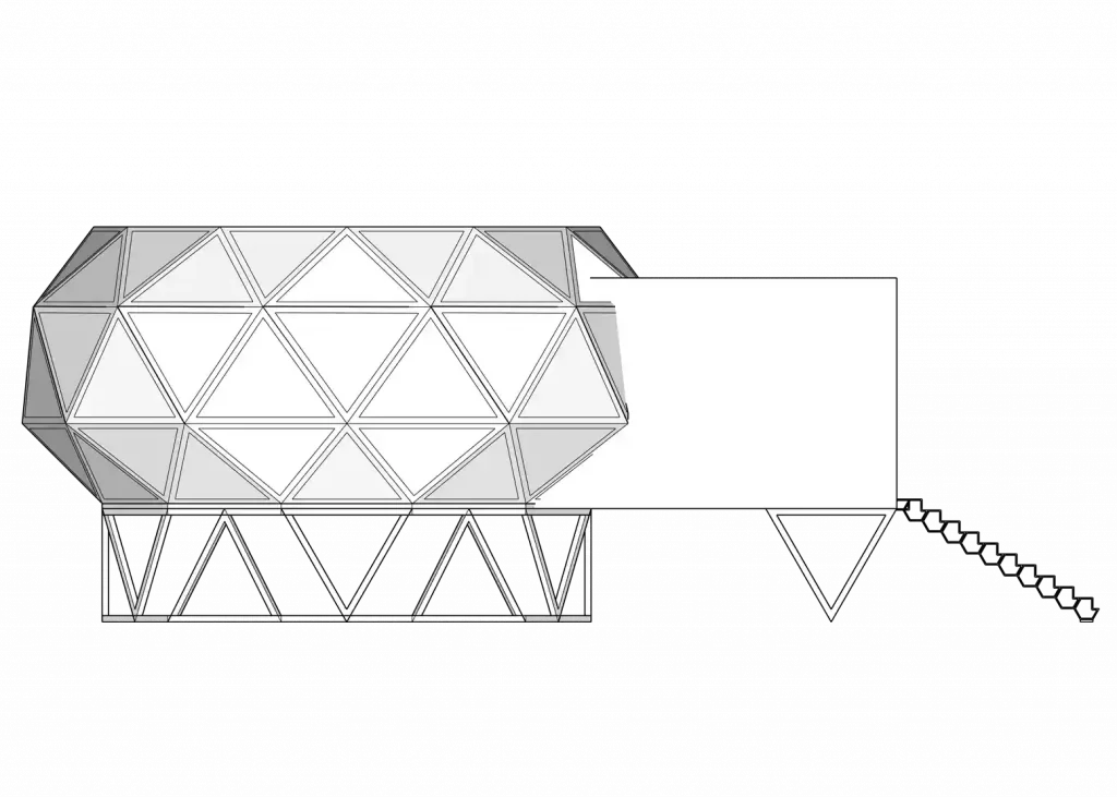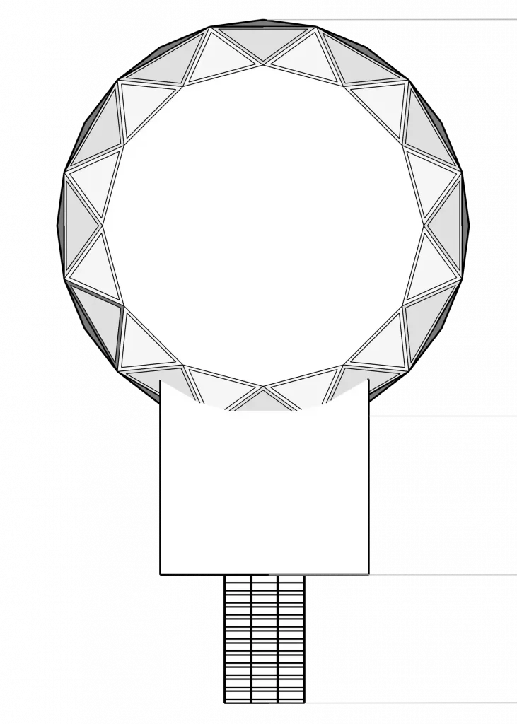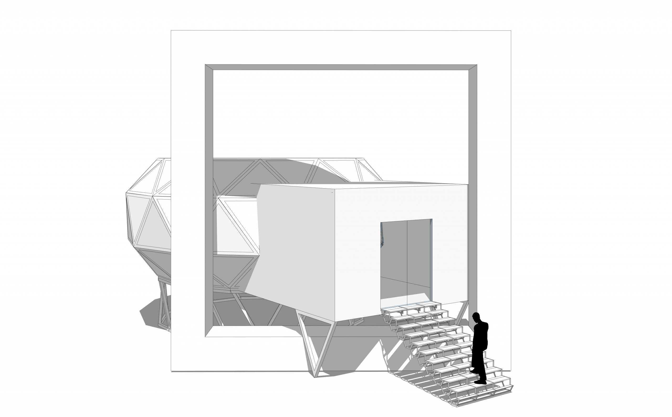 Das Labor für immersive Experimente und Projektarbeiten steht den Schülern als Portal für die zukünftige interaktive Form des Lernens. Eine Rahmenkonstruktion aus Aluminium-Streben bildet das äußere Tragwerk des Labors. Das Dreieck, das Hexagon (Sechseck) sowie das Dodekagon (Zwölfeck) sind im architektonischen Entwurf von Walter Gropius fester Bestandteil. Im Entwurf des Labors fügen sich die Polygone zu einem Kreis, der oben und unten abgeflacht ist. Aus dem konvexen Polygon bricht der Kubus des Foyers heraus.