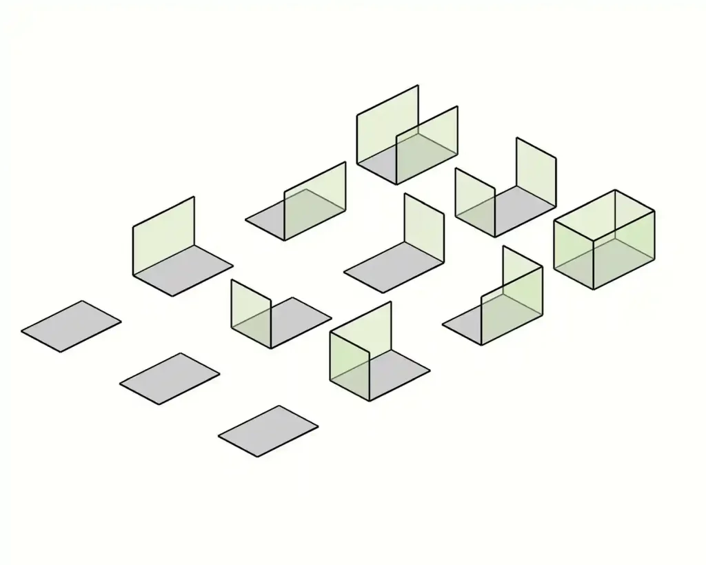 Die Typologie halboffener Räume mit immersiven Wänden bildet eine interessante Schnittstelle zwischen Innen- und Außenraum und weist spezifische Merkmale auf, die sie von den zuvor beschriebenen Typologien unterscheiden. Diese Räume zeichnen sich durch eine gewisse Durchlässigkeit und Verbindung zur Umgebung aus, während gleichzeitig definierte Begrenzungen durch Wände oder andere architektonische Elemente vorhanden sind. Diese Begrenzungen werden dann für immersive Projektionen genutzt. Typische Beispiele hierfür sind überdachte Innenhöfe, Arkaden, Loggien, oder auch temporäre Installationen unter Zeltdächern oder Pavillons.
