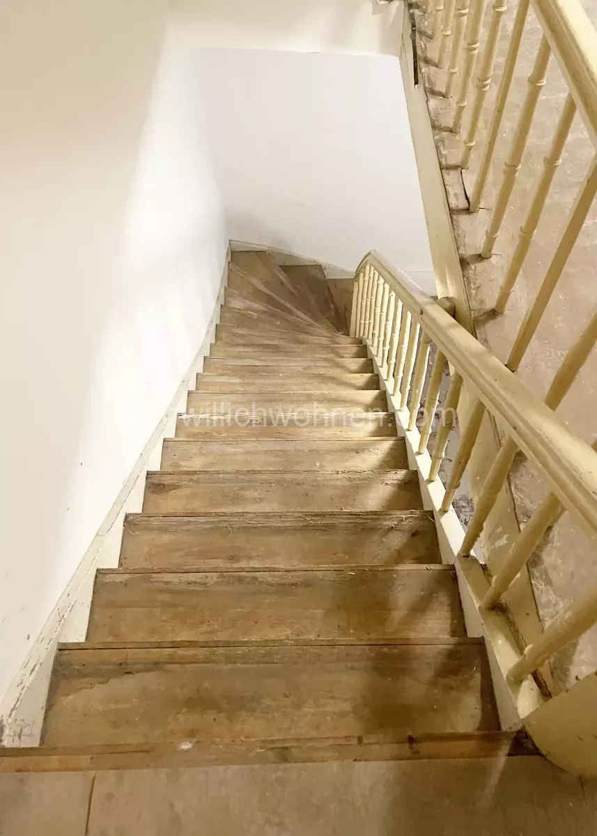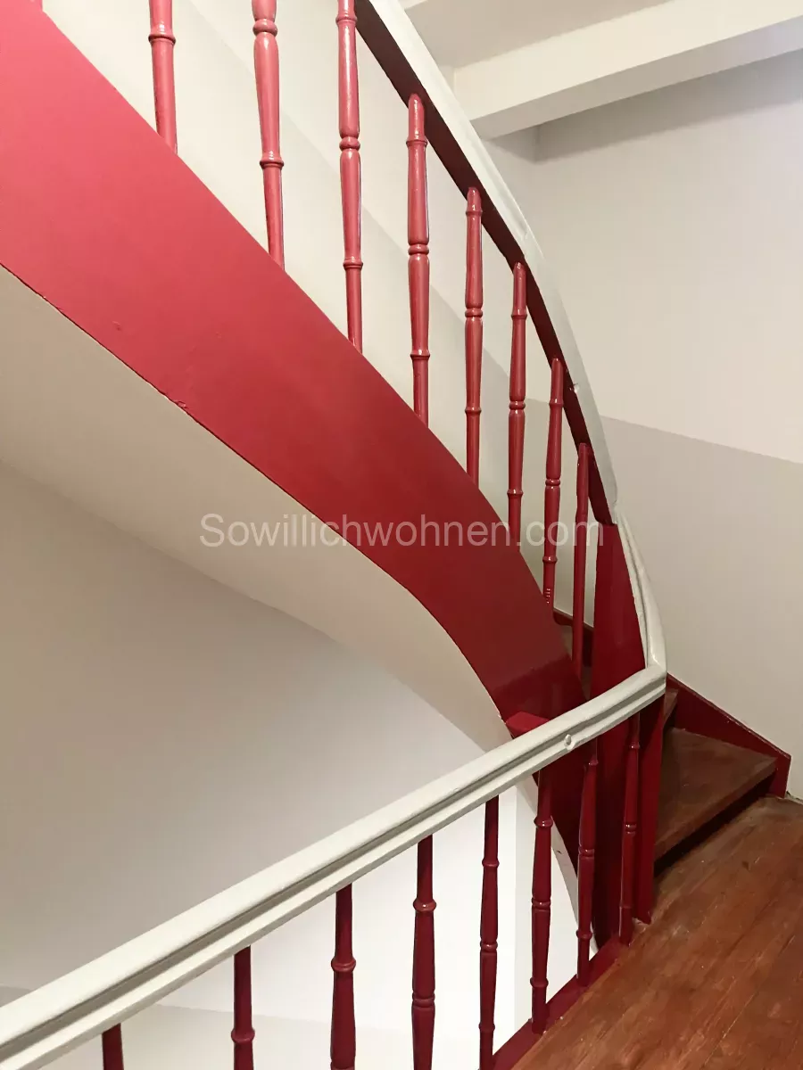 Das Treppenhaus des Rückgebäudes des Mehrfamilienhauses in München (Schlachthofviertel) hatte seit vielen Jahren keine Renovierung erlebt. In den Jahren zuvor wurden die Wohnungen mit Fernwärme ausgestattet, was zur Folge hatte, dass die Steigleitungen im Treppenhaus verlegt wurden. Eine Verkofferung gemäß der Brandschutzanforderungen erfolgte ebenfalls in den Jahren zuvor. Nun sollte das dunkle Treppenhaus eine Auffrischung mit neuer Farbe erhalten und die teilweise durgetretenen Stufen mussten überarbeitet und wieder fest eingebaut werden. Mit dem Maler wurden die Farbmuster gewählt. Ein Probeanstrich brachte Sicherheit für die Entscheidung: Rot und ein helles Grau!