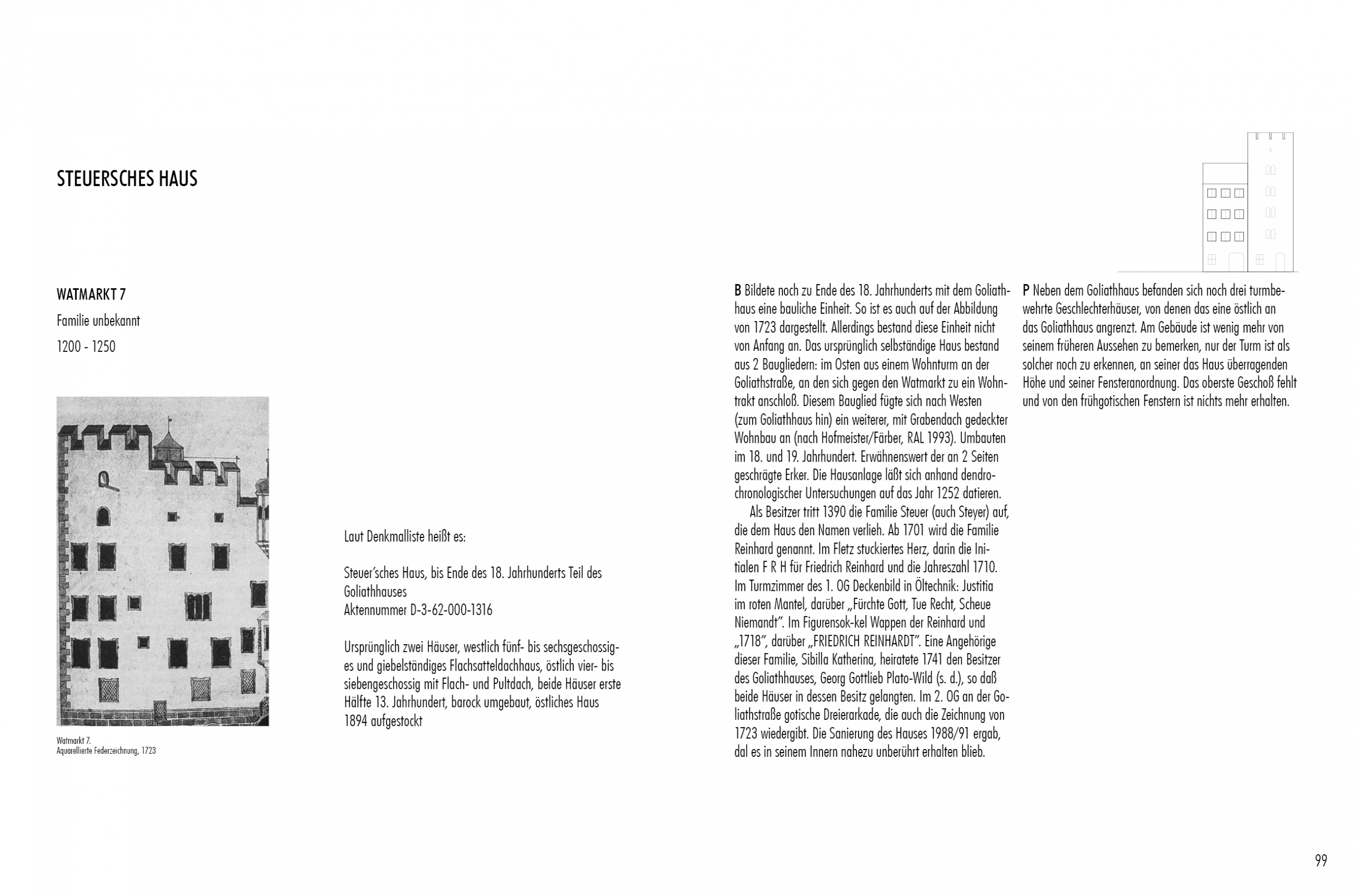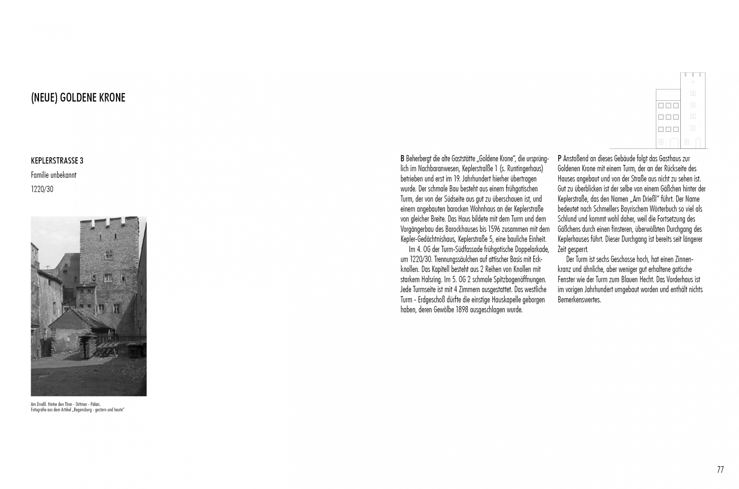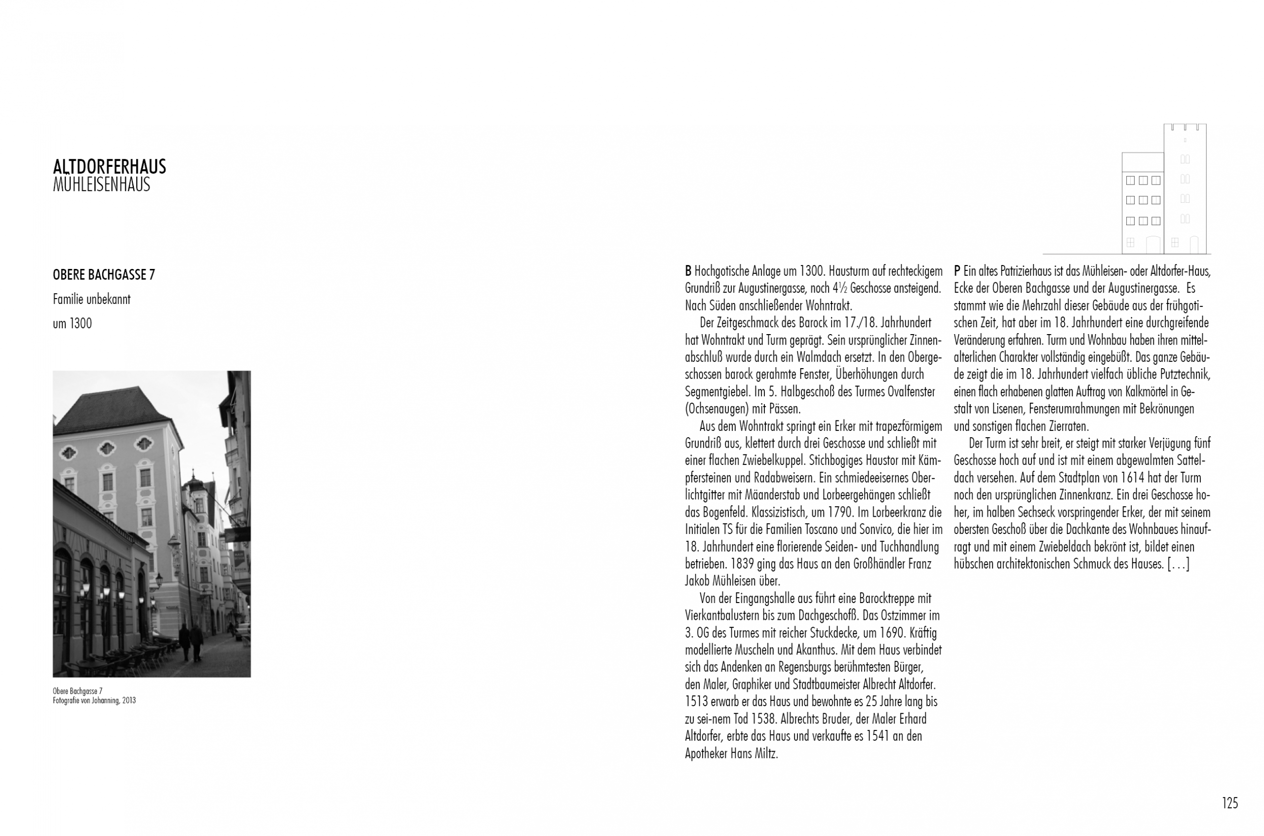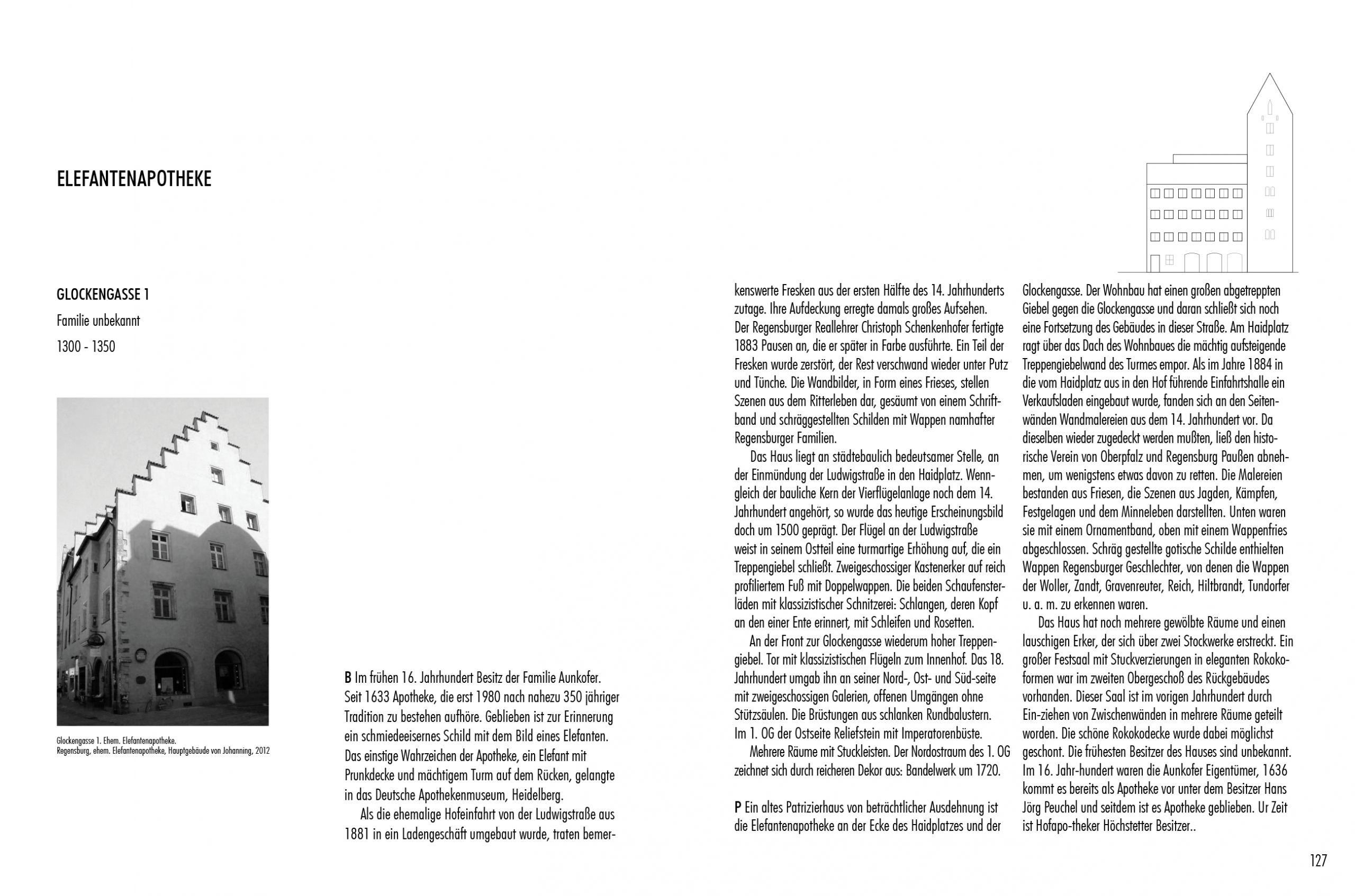 Im Team mit Jennifer Hienerwadel und Simone Mittermaier recherchieren wir fast 70 Patrizierhäuser, kategorieren und verorten sie au dem Stadtplan. Karl Bauer hat ein Buch über Regensburg geschrieben, in welchem wir wertvolle Bilder und Textbeschreibungen zu den Häuser und Straßen finden und ordnen diese ebenfalls den jeweiligen Patrizierhäusern zu.