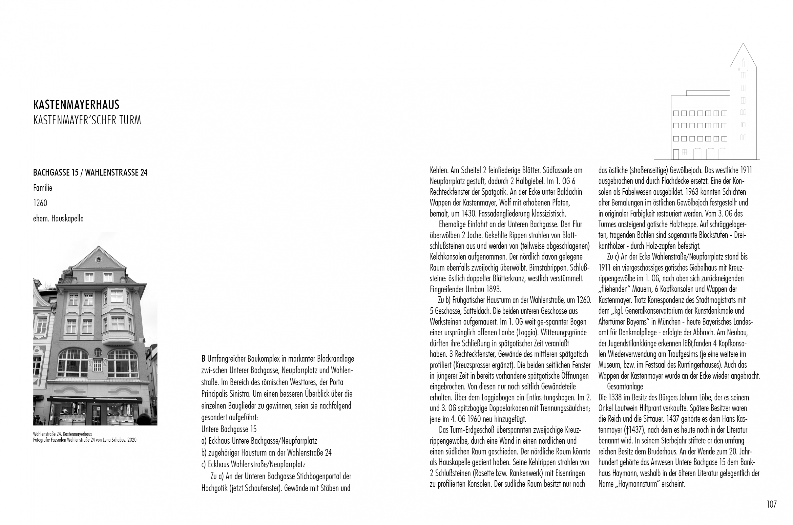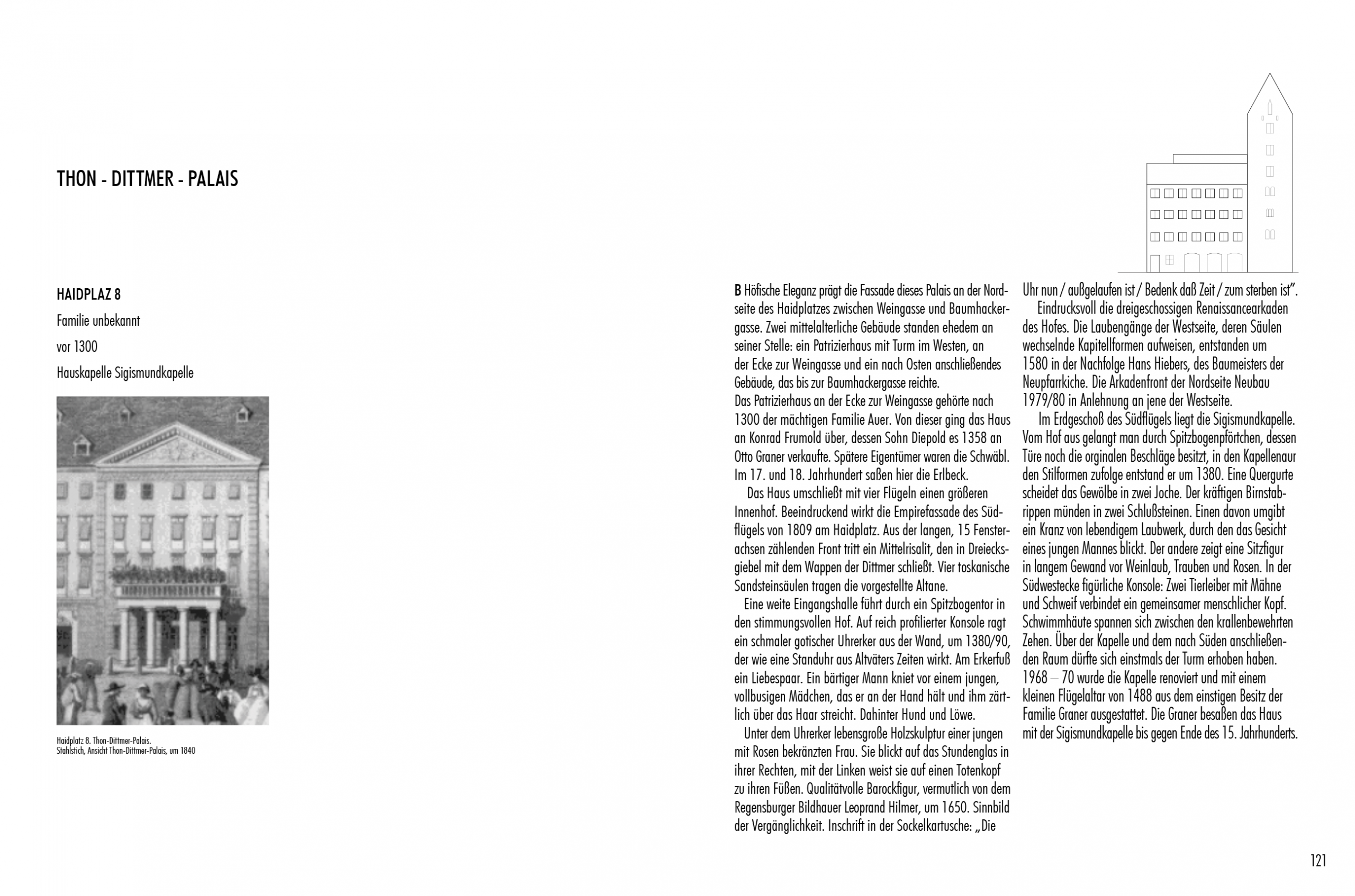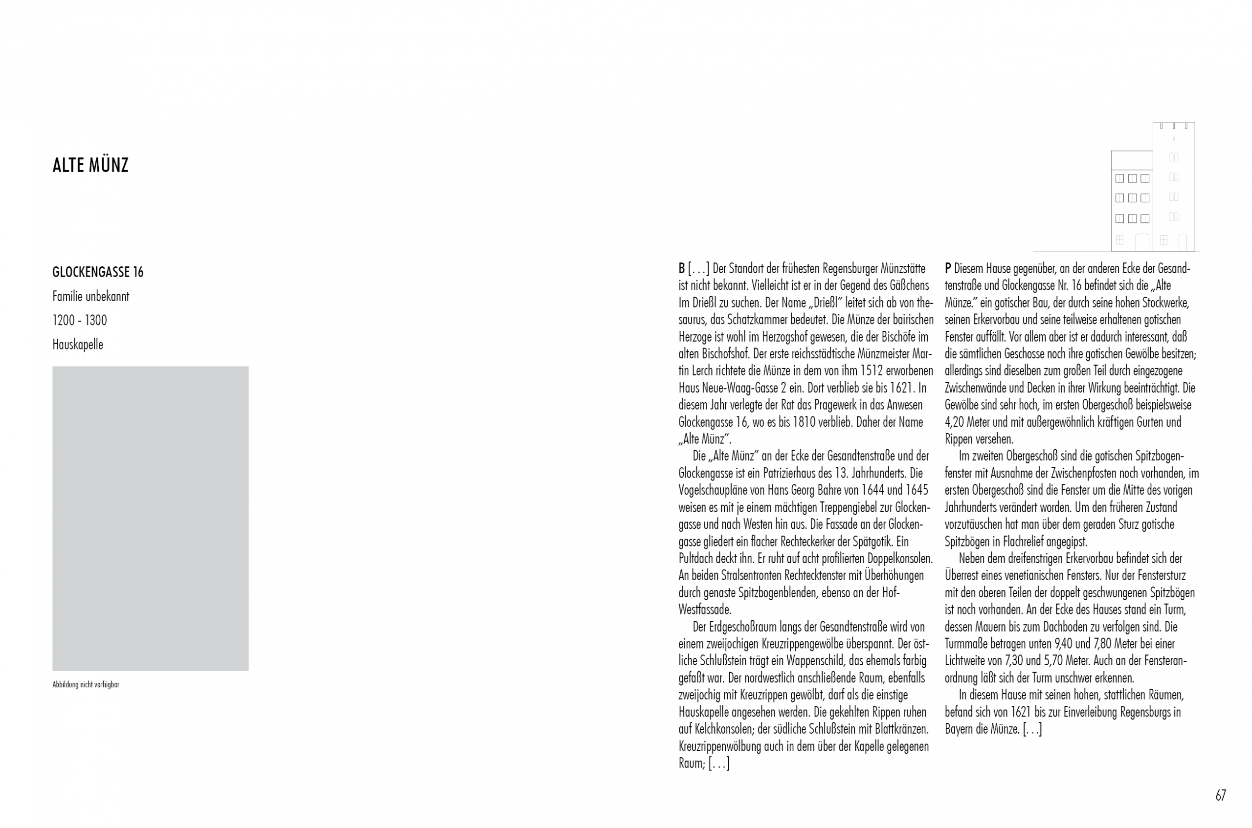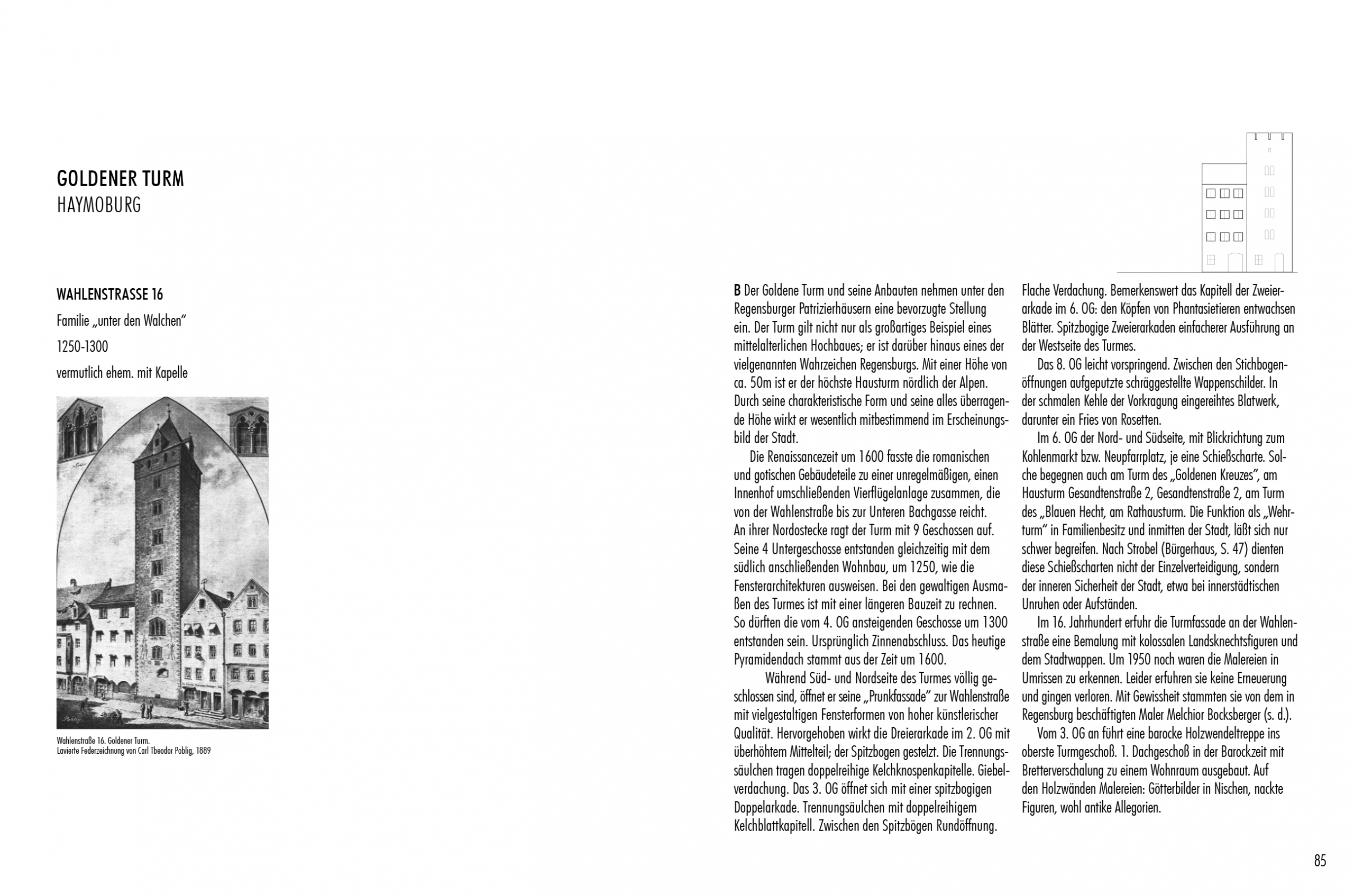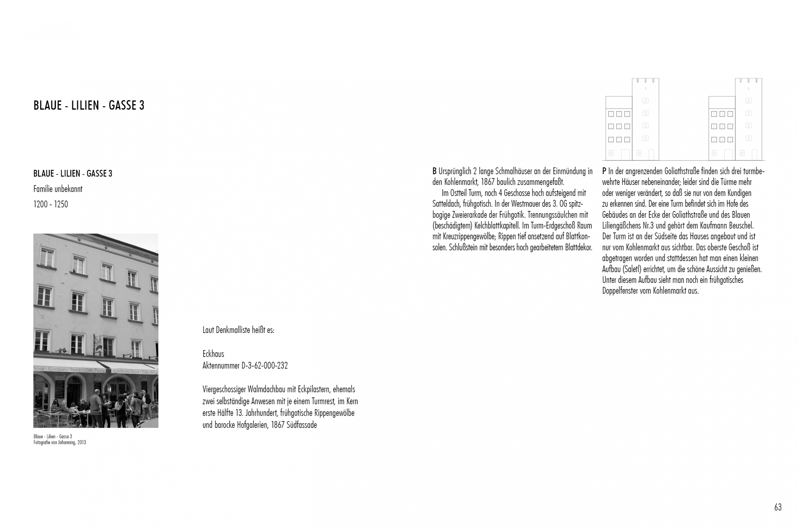 Im Team mit Jennifer Hienerwadel und Simone Mittermaier recherchieren wir fast 70 Patrizierhäuser, kategorieren und verorten sie au dem Stadtplan. Karl Bauer hat ein Buch über Regensburg geschrieben, in welchem wir wertvolle Bilder und Textbeschreibungen zu den Häuser und Straßen finden und ordnen diese ebenfalls den jeweiligen Patrizierhäusern zu.