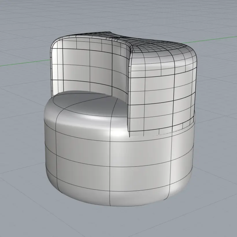 Ableitung mit Varianten der ausgeschnittenen Sitzbereiche: Mit Hilfe des CAD Programms Rhino entsteht ein Modell mit zwei Sitzbereichen – Rücken and Rücken