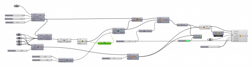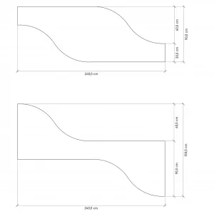 Die Grundform der Welle wird hier an der langen Seite mit einer 180° Drehung zusammengeführt. Gleiches passiert auf der kurzen Seite. So entstehen zwei Wellenformen: Eine im Mittelteil schmale und als Gegenstück dazu eine in der Mitte breite.
