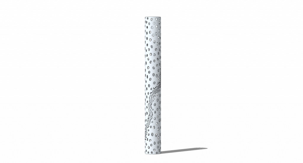 Den visuellen Kick und emotionalen Magneten zum Besuch der Ausstellungsräume bilden die parametrischen Verkleidungen und Wandgestaltungen, welche sich über die vertikalen Innenflächen erstreckt. Auf dieser werden im Großformat die Flussläufe dreier Alpenflüsse Bayerns dargestellt (Inn, Isar, Lech). Mit der Software Grashopper programmiere ich die gestalterische Visualisierung der Flussläufe.