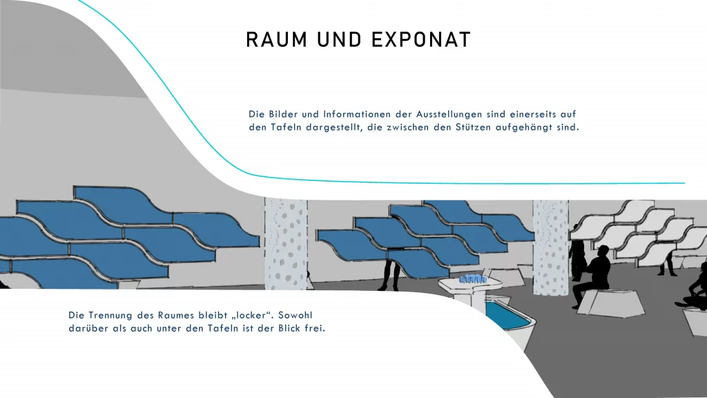 Von den über 2.800m² Bruttogeschossfläche im Erdgeschoss wird die Wasserausstellung ca. 550m² beanspruchen.