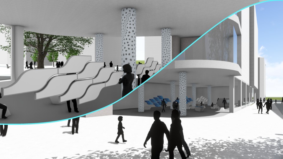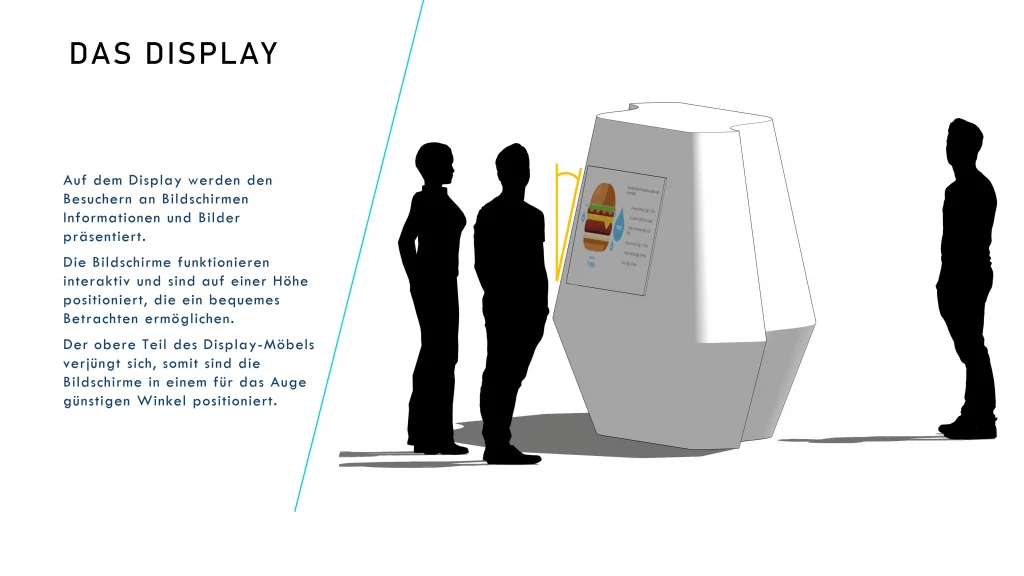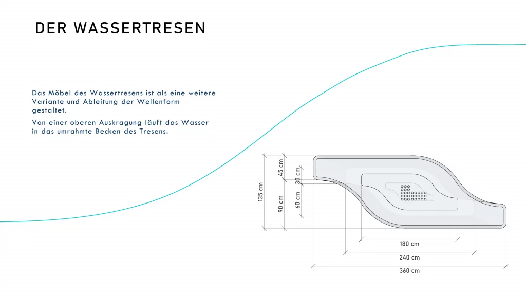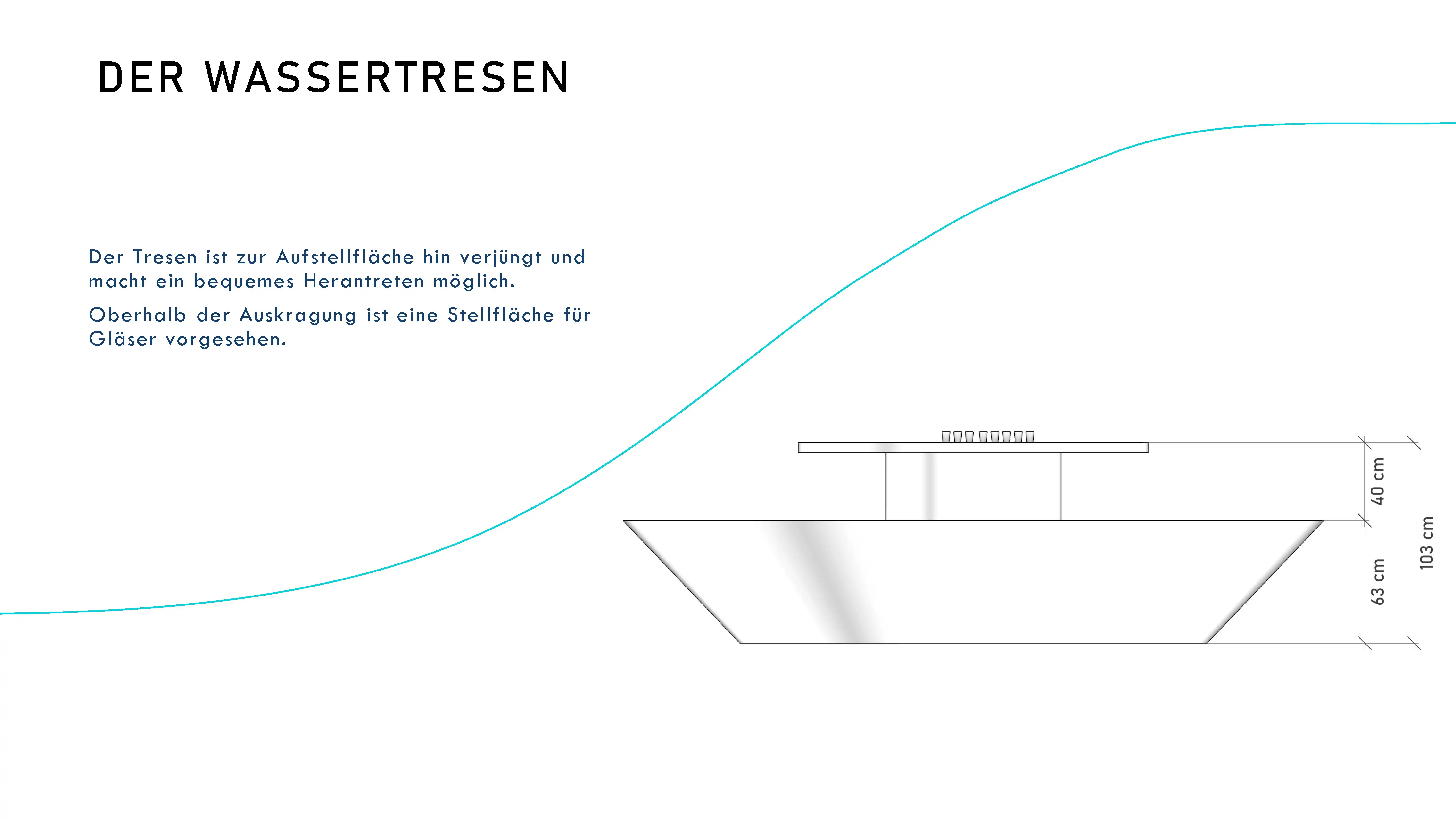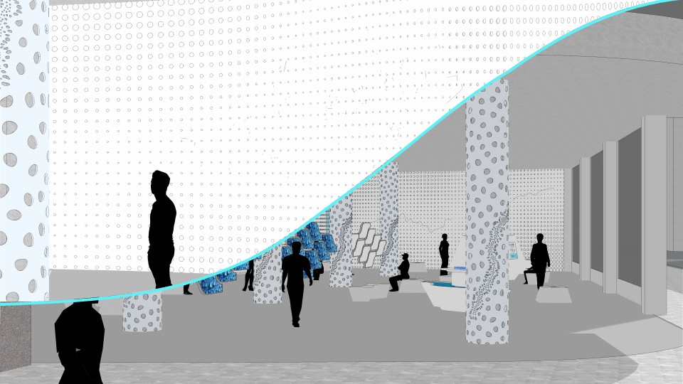 Ziel ist es, mit Hilfe einer auffälligen Fassade Aufmerksamkeit zu schaffen und durch die visuelle Gestaltung der Innenräume, die Neugier der Passanten zu wecken, der Wasserausstellung einen Besuch abzustatten.